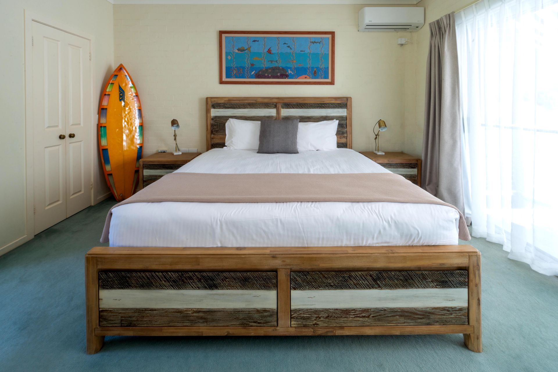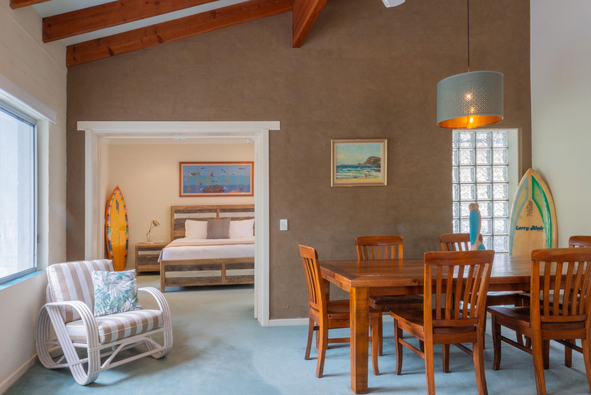 Fully self-contained 1 bedroom unit. Guests in staying in Sugarloaf enjoy fresh furnishings, crisp white sheets, a super-comfy King bed, and large living and kitchen space. Relax poolside, enjoy the BBQ courtyard and garden areas, or relax in your own private unit featuring a fully equipped open kitchen, bench, bar stools, lounge area, large flat-screen TV, and shower - all just a short stroll to Blueys Beach, local shops and eateries with Boomerang Beach just over the hill.